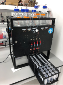 The purification of recombinant proteins is essential for both basic research and drug discovery and development. However, there are currently no good commercial instruments for purifying multiple proteins in parallel at milligram scales. To fill this gap we have built an automated, four-channel chromatography platform for parallelized protein purification at milligram scales. The device can purify up to four proteins (each with its own single column); has inputs for up to eight reagents, buffers, or solvents that can be directed to any of the four columns via a network of software-driven valves; and includes an automated fraction collector with 10 positions for 1.5 mL or 5.0 mL collection tubes, and four positions for 30 mL collection tubes, for each column output. This is a collaboration with John Pak’s Protein Science team.