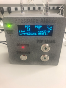 • Ventilator alarm: A small device that monitors the air pressure coming out of a hospital ventilator and generates audible alarms when it detects unsafe conditions for the patient, such as over-pressure, lack of breathing, etc. This device was designed to allow the use of cheap and easily available “transport ventilators” in the ICU when there was an acute shortage of ICU-rated ventilators (which have integrated alarms) in the early stages of the pandemic.