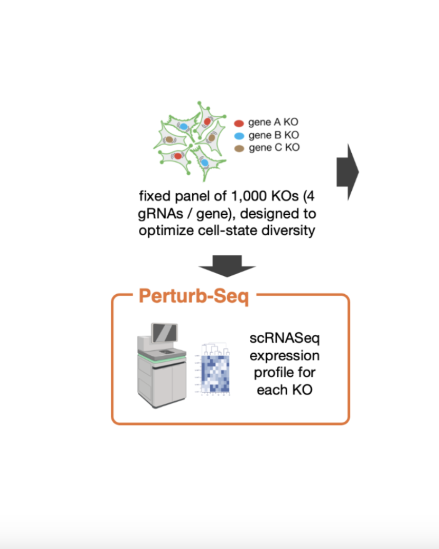 Our team designed a 1,000-gene CRISPR panel to systematically explore cellular states and pathways in response to gene knockout. Using both optical pooled screens and single-cell sequencing, we map morphological and transcriptomic changes, targeting critical pathways, such as the unfolded protein stress response.