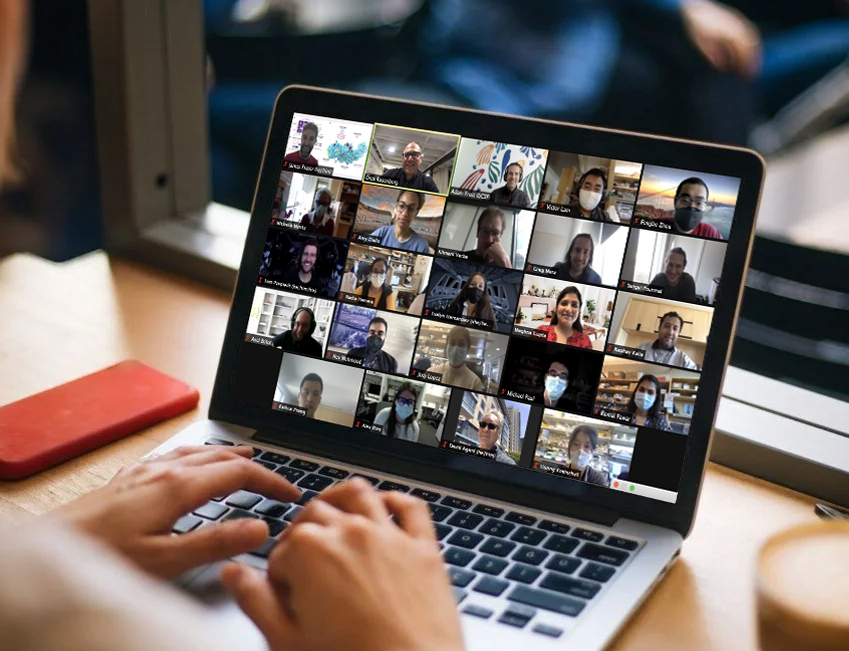 As with many scientific collaborations during the COVID-19 pandemic, the UCSF team that solved the structure of Nsp2 completed most of the project virtually, conducting team meetings with videoconferencing tools. (Screen image courtesy of A. Frost, UCSF)