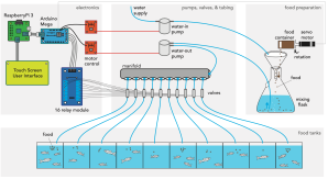 The ZAF+ system has a touch-screen interface that allows users to prepare and distribute food to many tanks, with the ability to vary the amount of food dispensed based on the number of fish in each tank. (From Lange et al., eLife 2021;10:e74234 DOI: 10.7554/eLife.74234)